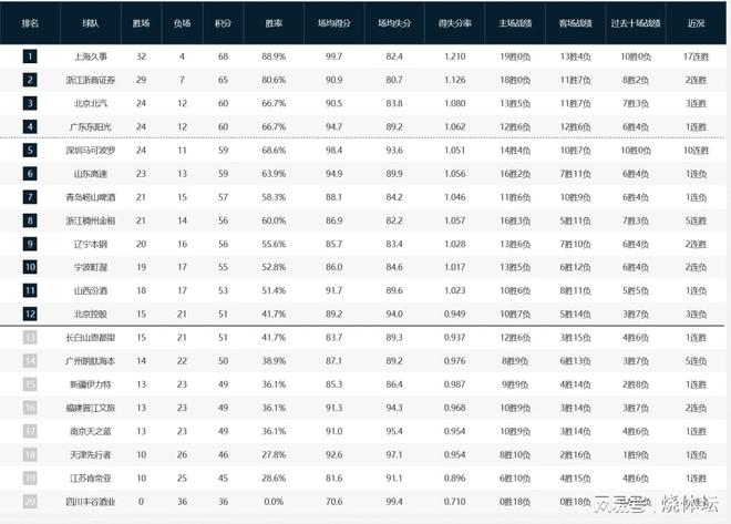 至此,上海男篮客场告捷豪取17连胜,以32胜4负的战绩领跑积分榜。目前上海男篮已锁定积分榜前二,且领先浙江广厦3个胜场,大概率能够获得常规赛冠军。宁波男篮目前仍是19胜,领先季后赛门槛4个胜场,仅剩6轮的情况下晋级季后赛希望极大。