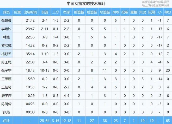 本场比赛,中国女篮在首发上派出张曼曼、杨舒予、罗欣棫、李月汝、韩旭的阵容。